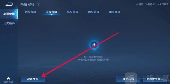 6.跟着我就在荣耀称号的这个页面点击左下角的设置战区键;