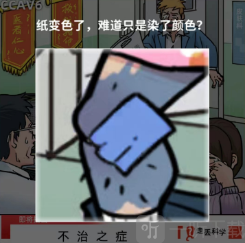 回答:玩家先点击医生桌子上的纸巾,纸巾会飞到男子的腿上,发现纸张被染色了。
