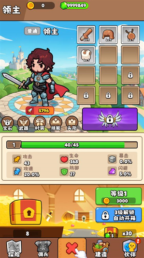 6、点击领主可以开启不同的装备宝箱提升主角的战斗力,每次开启宝箱的装备都是随机获得的。