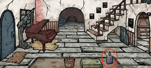 6、来到楼梯处,结合卡丽莎时间和笔记本里的提示找到对应顺序(影院、气球、餐厅、海边)的四个符号,用它们可以打开巴斯蒂安视角下的楼梯间拿到玩偶。