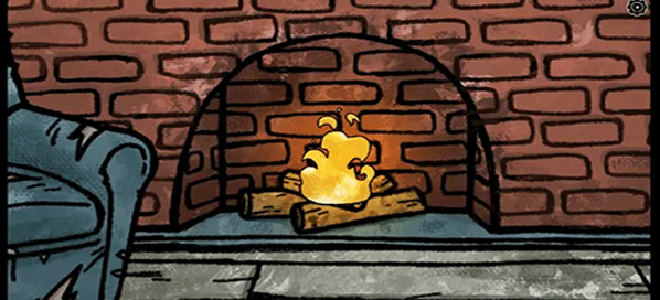 11、来到沙发处将木头放在壁炉里点燃(改变卡丽莎视角下的场景),接着组合鱼钩鱼线和皮皮虾在新出现的钓坑中钓起一只鱼。