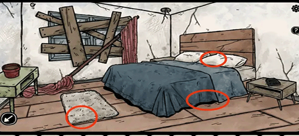5、切换到巴斯蒂安,拿走床底以及垫子下方的半个面具和鱼钩,在枕头下方找到第二只收集要素。