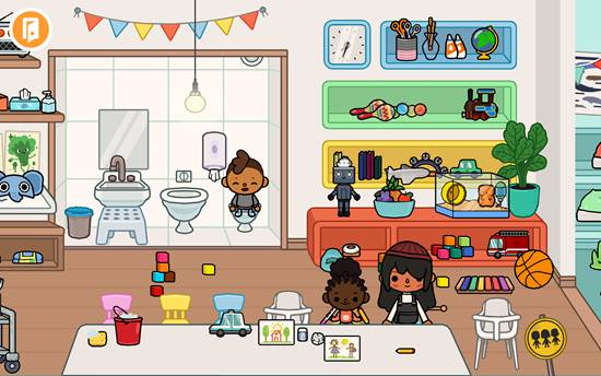 又或者点击左上角的退出房间按钮,去到自己的家中,可以看到也有很多小朋友,点击任何人物或者物品都可以移动。