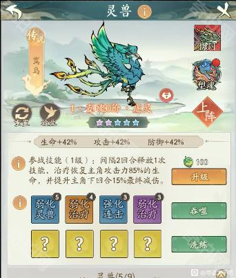 由于鸾鸟的技能增加减伤,所以注定鸾鸟要吃敏捷,如果敏捷过低,很容易在吃到减伤BUFF之前就被对方灵兽攻击!