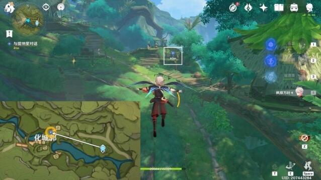 传送化城郭神像,前往化城郭木平台上,与提纳里对话1分钟