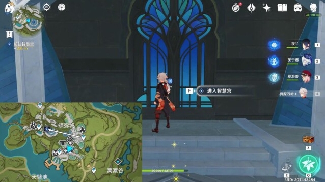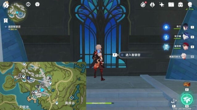 前往须弥城锚点,前往智慧宫,与纳西妲等对话1分钟