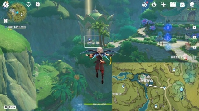 传送须弥城锚点,往地图的西北方向飞,与卡维等对话3分钟