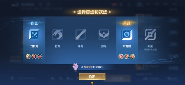 王者以上段位玩家开局前可选择主次分路进行匹配,玩家可随时更换选择,系统将优先匹配主选分路,尽量降低次选分路的匹配比例,防止可能出现的连续次选分路的匹配等问题。