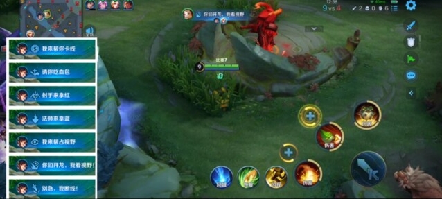 本次新增的信号包括“我来帮你卡线”、“请你吃血包”、”射手来拿红“、”法师来拿蓝“、”我来帮占视野“、”你们开龙,我看视野“、”别急,我断线!“等