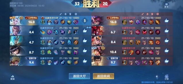 我们优化了结算评价算法,过去的算法会过于看重击杀死亡助攻这类结果数据,但在对战中为团队有贡献的过程行为其实也应该被看到和被肯定。