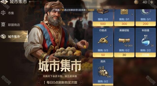 6、打沙盘推演,在城镇集市购买科技点和使者,尽可能收集全部的零碎科技点