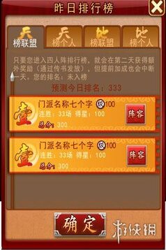 1、根据决战巅峰的战斗结果,将依次排出天榜联盟排名和地榜联盟排名。