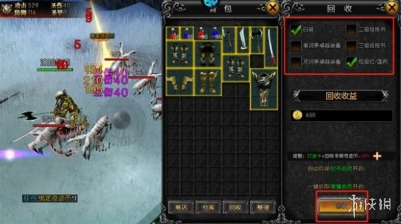3、在回收界面中,玩家可以根据自己的需求设置想要回收的道具和装备类型,设置完成后点击回收按钮即可获得相应收益。