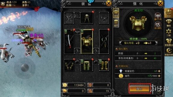 3、点击强化按钮即可对装备进行强化,强化过程需要消耗一定数量的金币和宝石。
