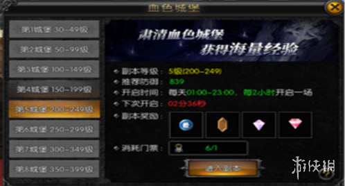 进入血色城堡需消耗透明披风,可通过合成材料获得,由于副本内地形优势,血色城堡内获取经验的速度更快,因此备受玩家欢迎。