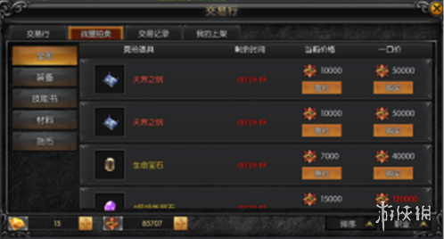 拍卖采用竞价和一口价两种模式,玩家可自由选择,竞拍时长为半小时,足够玩家充分参与。