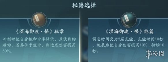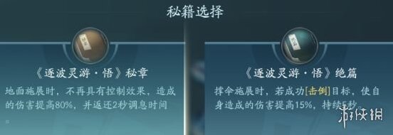 浮游:续减伤免控,物化手长,逐波绝篇秘籍唯一生效手段;秘章秘籍可构筑挑飞击落循环,可联动逸步 跃潮;绝篇秘籍可搭配溟海 逐波。