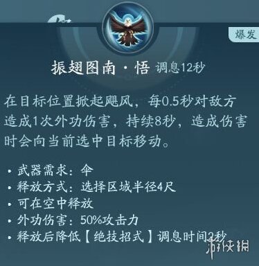 振翅:绝篇秘籍拉人效果,可配合驰风圈限制移动,持续久间隔短。