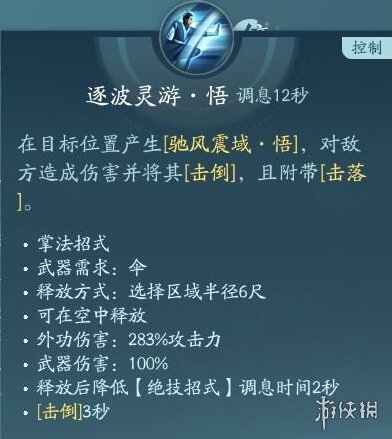 在空中释放时,将直接击倒侠士目标。秘章增伤pve可选,绝篇为pvp效果。