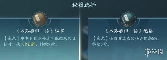 木落雁归为两段技能,壹式在施法动作结束后出伤害,壹式施展后,五秒内可施展贰式。PVP点秘章,因为有定身,PVE点绝篇。