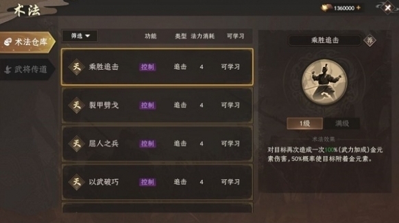 让武将学习合适的术法将会极大的增强武将们在战场上的作战能力。