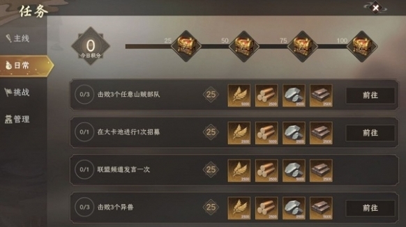 这些任务需要诸位将军齐心协力才能完成,达成对应的目标后即可领取一份丰厚的任务奖励。