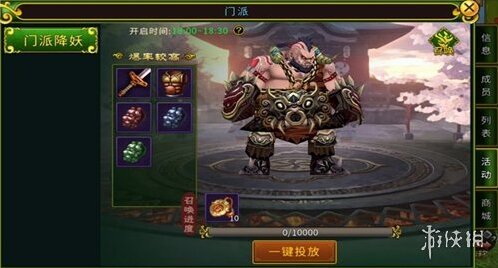在门派里,有着丰富有趣的活动玩法,比如门派降妖,可以和门派成员一起召唤妖兽,共同击杀获取奖励。