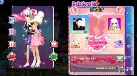 4. 成为好友或密友后,通过提升友好度或亲密值,双方可以申请成为情侣。成为情侣后,通过结婚仪式,将开启夫妻系统。成为夫妻后,玩家同样可以为对方设置专属昵称和专属动作,领取神秘的情侣奖励。随着婚龄等级的提升,还将解锁更多专属的合成服装。心动不如行动,快去寻找让你心动的Ta吧!