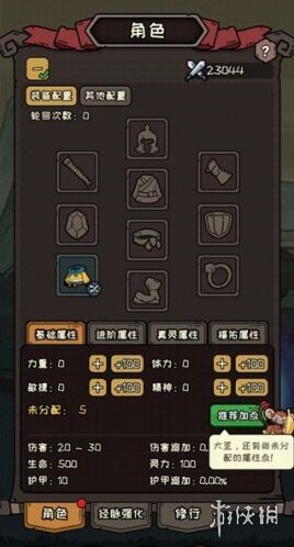 5、点击左下角的角色图标,可进入人物页面,在此页面,玩家可查看角色当前属性。