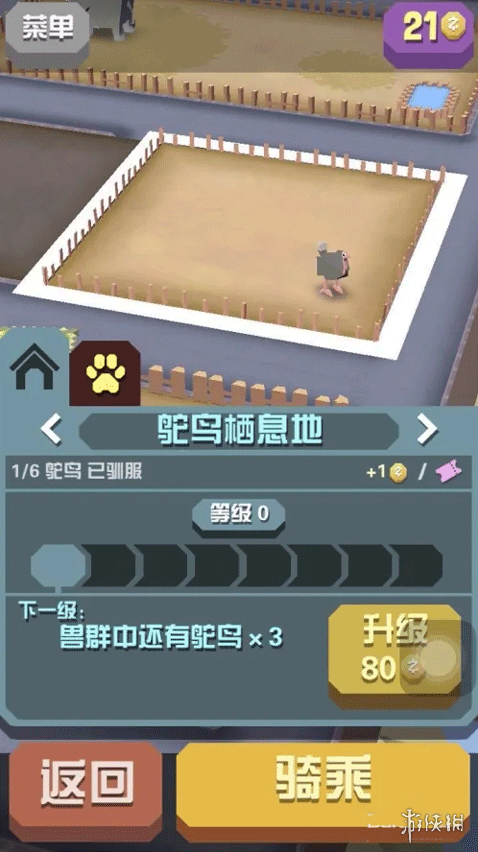 4、获得新动物后,返回动物园可以给它建造一个新的设施并进行升级。