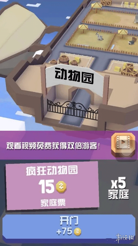 2、然后不断的进行动物园开张,在预测游客数量的时候,点击“观看视频让游客数量翻倍”,在看完游戏广告视频后,游客数量会变为之前的2倍,这样就可以获得2倍金币了,如此反复即可。