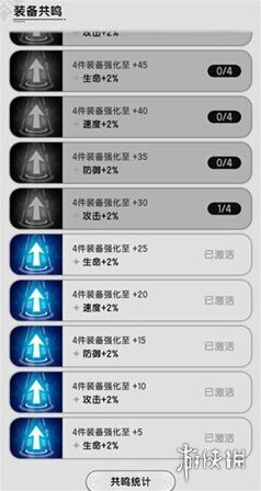 2、装备系统:装备强化功能已开放,需注意的是,装备升级一定要保持平均,因为装备强化存在共鸣效果,具体来说,当4件装备达到5级、10级、15级、20级、25级、30级、35级、40级、45级时,都会触发共鸣效果,这个共鸣效果非常关键,错过会损失不少战力。