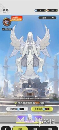 3、心愿女神像:用于抽取人物技能,开局时,官方会赠送30次传说抽取机会,后续保底为70次抽取,建议大家前期通过完成任务,尽快抽取到第一个传说技能,一旦有10连抽取机会,就立即使用,不要积攒,否则会影响战力和进度。