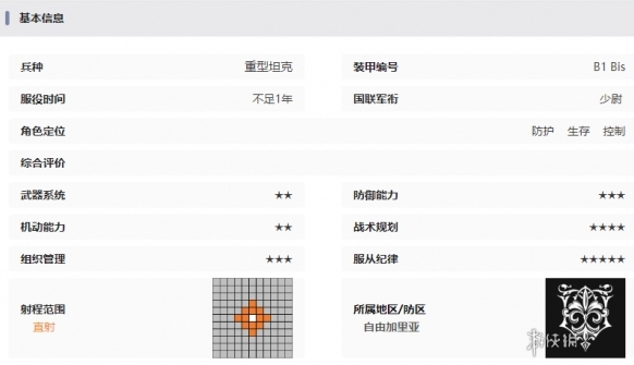 连携:射程范围内,己方地面单位主动攻击时,对敌人追加75%火力伤害,最多2次,此状态在下个己方回合开始时移除(不可驱散)。