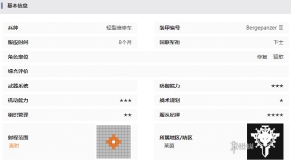 修复:为获取补给的己方单位及周围2格范围内友军恢复耐久值(优先)及质量盾,恢复量为自身最大耐久50%(不可驱散)。