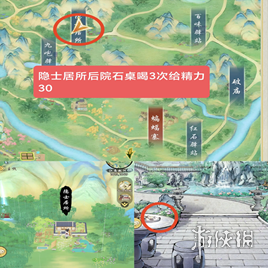 4、在隐士居所后院的石桌旁,饮用三次可获得30点精力。