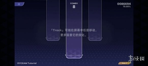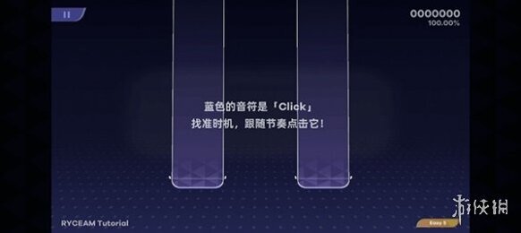 2、点击(click)音符操作最为基础,仅需轻触轨道右下角即可触发。