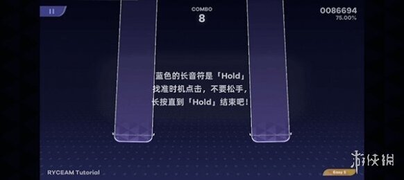 3.「HOLD」玩家需要在「HOLD」到达判定线时用手指长按相应时间。