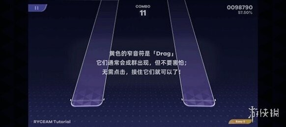 2.「DRAG」玩家需要在「DRAG」到达判定线时用手指接住。