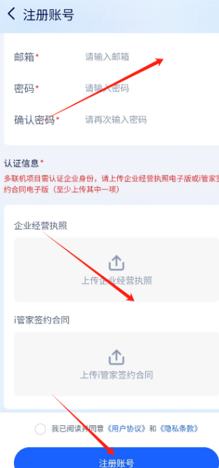 1、用户下载进入软件在首页点击注册账号,然后快速进入信息提交界面进行下一步操作