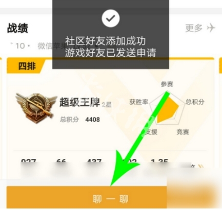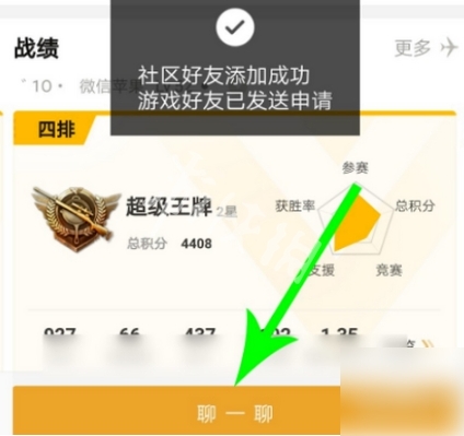 3、需要注意的是,和平营地“私聊-组队开黑”按钮,只会在互相关注的好友及游戏好友私聊界面显示,如果是微信或者QQ邀请跨区好友组队开黑,必须要与好友在和平营地互相关注才可以。