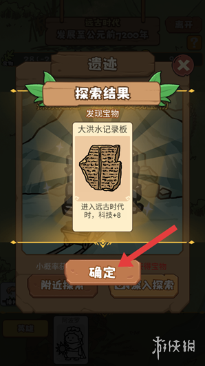 4、在勘察报告界面查收战利品,经确认操作后将特殊资源转化为文明发展助力。