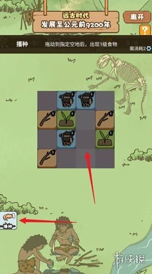 5、远古时代默认开放播种技能长按技能按钮拖拽至目标地格即可发动。