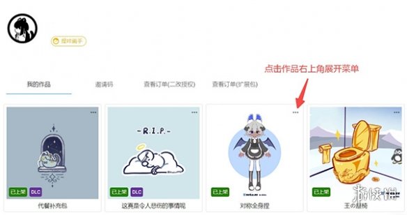 1、在捏咔工坊中,选择想要为其创建DLC的作品,然后点击作品右上角展开的菜单。