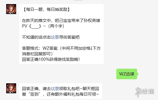 4、接着将正确答案填写至输入框并发送就能领取对应的奖励了。