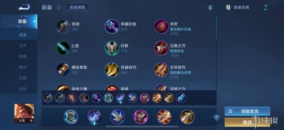 小贴士:很多玩家玩吕布喜欢第一件就出破军,实则是不对的,这会让吕布前期极为脆弱,很容易出现一抓就死和跳大就无的局面,正确的出装顺序应是判断对抗路打谁,如果打司空震这种AP就先出魔抗小件,如果打AD就先补一个荆棘护手,之后出抵抗鞋,在做苍穹,然后有一定坦度后才能做破军,再补暴烈、破魔刀,最后一件视情况而定。
