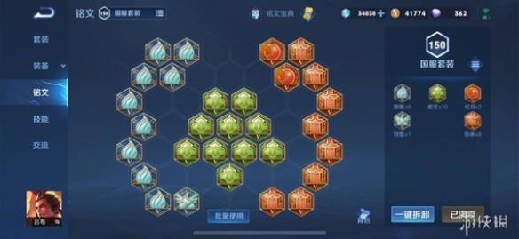 铭文为8传承2红月10虚空9隐匿1狩猎,多为攻击力和减CD铭文。