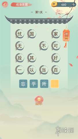 5、打开提示功能,获取成语提示,帮助通过关卡。
