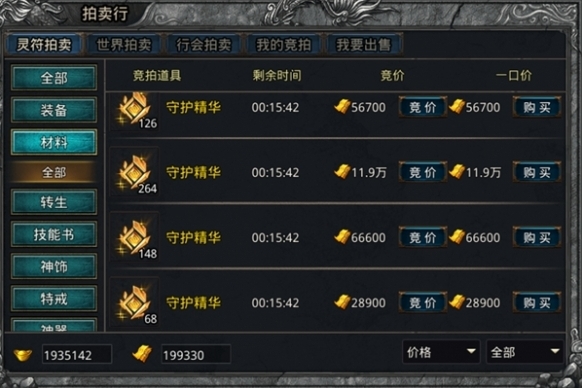 守护精华除了每日的守护副本获取外,每日固定时间还会在拍卖上上架一定数量的材料,需要快速提升的勇士可以选择购买。