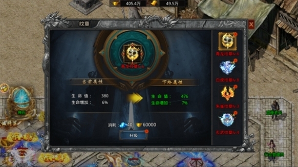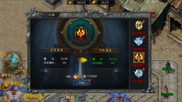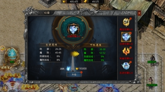 激活后可获取对应的属性加成,包括:攻击,魔法,道术,PK护盾,对怪增伤,防御,魔防,PK减免